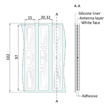 Etiqueta estreita descartável, com um desempenho superior em vários materiais de embalagem e compatível com impressoras RFID padrão.