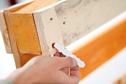A etiqueta é inserida dentro da estrutura de madeira onde fica segura contra impactos mecânicos, possuindo desempenho comprovado no interior da mesma.