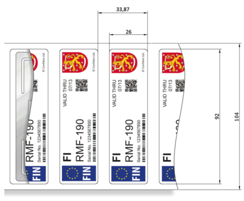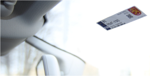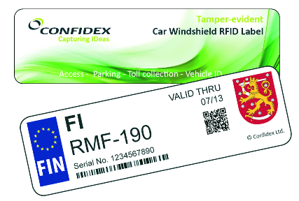 A etiqueta é otimizada para trabalhar no vidro do pára-brisa do carro e não pode ser removida sem ser destruída. A memória do usuário é protegida por senha e pode armazenar os dados do usuário criptografados.